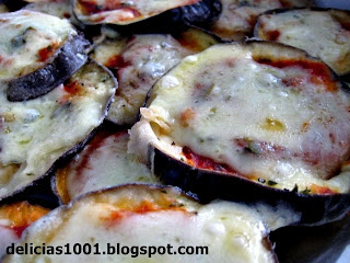 Corta-se a berinjela em rodelas de 1 cm.