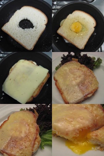 Coloque numa frigideira anti-aderente 1 colher de chá de margarina e uma fatia de pão de forma sem pedaço do miolo.