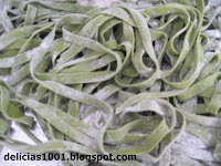 A proporção dos ingredientes é a mesma da massa caseira (veja o link acima). A única diferença é que para ser verde precisa colocar espinafre cozido bem espremido, sem nenhuma água, para não perder o ponto (um pouco só, para dar cor). E a quantidade de farinha aumenta um pouco por conta disso. Não tem muita medida não! É sentir como no passo-a-passo.