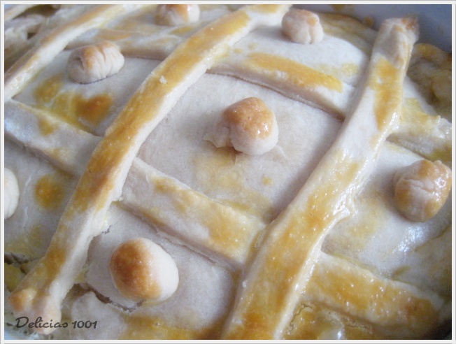 Colocar o recheio dentro (não quente) e cobrir com outro pedaço de massa aberta.