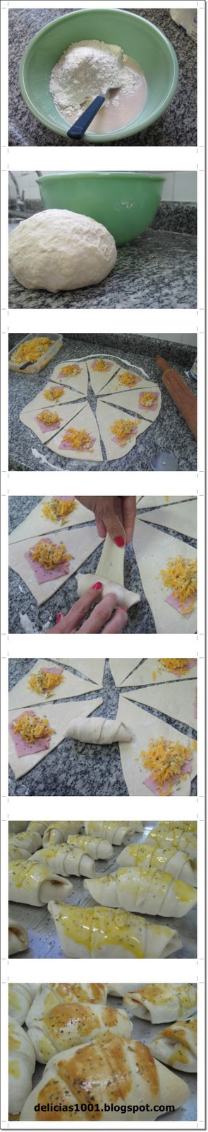 Rendimento: 3 discos de massa com 8 pedaços cada = 24 pãezinhos