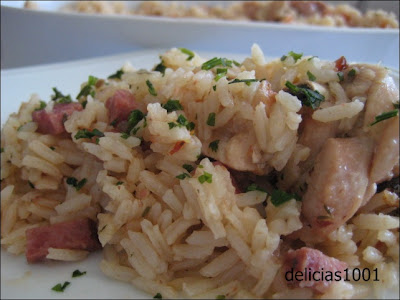 Depois de dourado, acrescente fatias ou pedacinhos de bacon, cebola bem batidinha, 1 tomate sem pele e sem sementes e 1 gomo de lingüiça portuguesa em rodelas. Se desejar mais sabor, coloque também 1 cubinho de caldo de galinha.