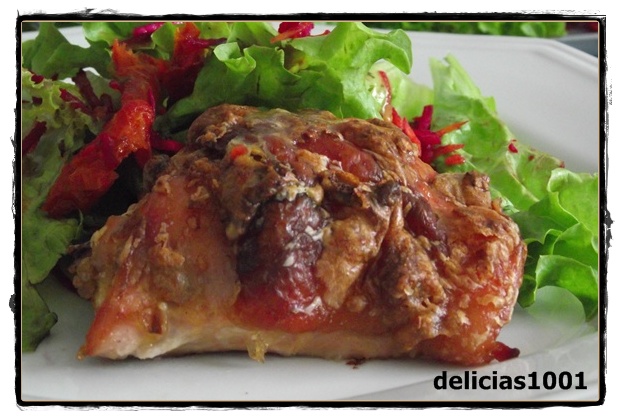 Lambuze bem todo o pedaço de frango com essa ‘meleca’ e coloque numa assadeira untada com óleo com o lado da pele voltado para cima.