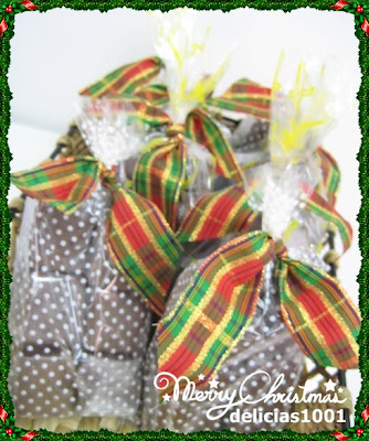 Para presentear cada uma, fiz o pão de mel (receita aqui) e os arrumei em saquinhos. Veja que graça ficaram…