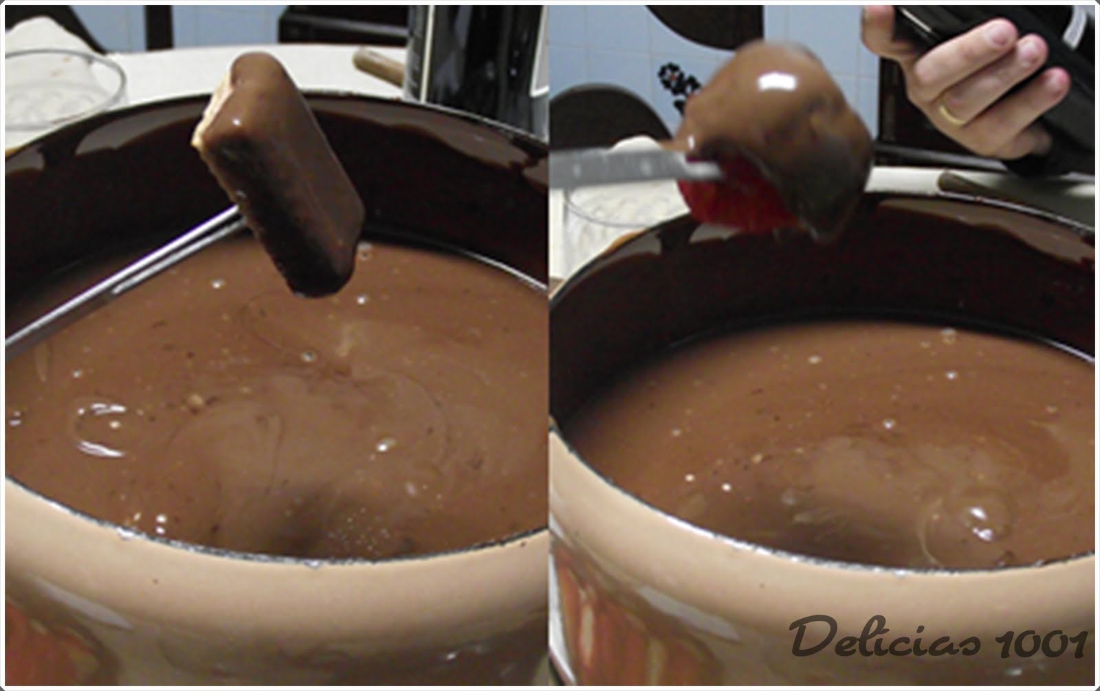 Derreto no microondas (mas pode ser direto na panela de fondue, só que em banho maria) 500g de chocolate ao leite, 200g de chocolate meio amargo (em quadradinhos) e 1 lata de creme de leite com soro. Ligo na potência máxima e mexo a cada 30 segundos. Mesmo que ‘pareça’ que não precisa, mexa mesmo assim. É importante para que ele não se queime.