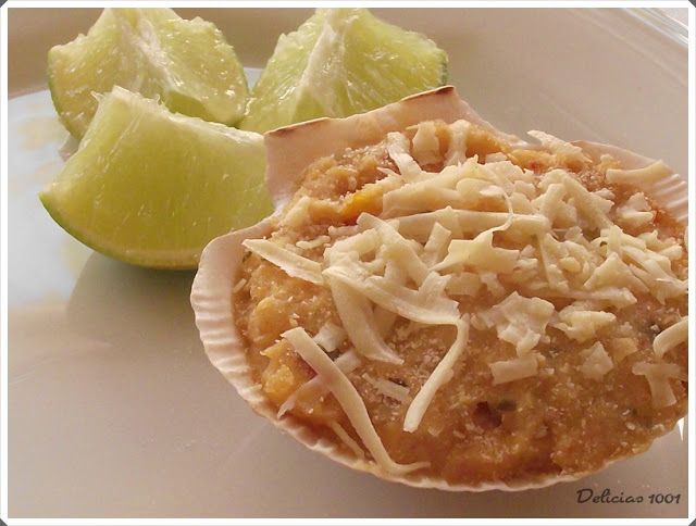 Adooooooro casquinha de siri. Não sabia que levava pão! Bacana, vou comprar as casquinhas para fazer em casa também!