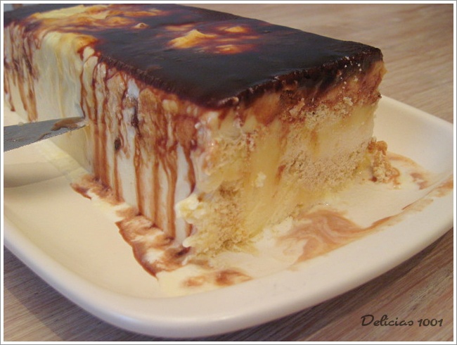 Desenformo (levo ao fogo rapidamente para o sorvetão se soltar da forma), fatio e sirvo.