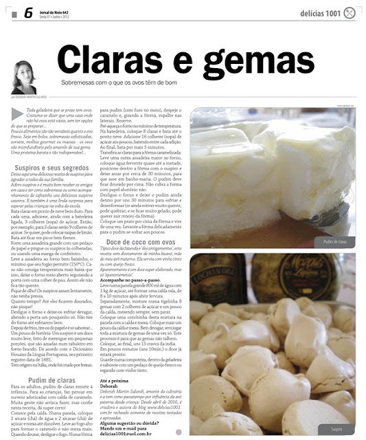 As receitas escolhidas nesta semana foram pudim de claras, suspiros e doce de coco com ovos, receitas de família…