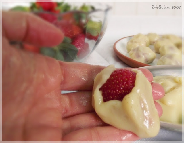 Como eu já disse antes, essa delícia deve ser conservada na geladeira e ser consumida em pelo menos 24 horas, pois o morango começa a ‘suar’ e o bombom estoura.