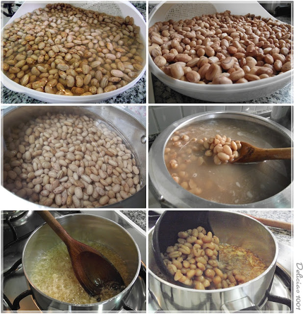 Escorra, lave em água corrente e leve cozinhar numa panela de pressão em água limpa até cobrir bem o feijão por 20 minutos. Abrindo a panela, verifique se os grãos já estão macios, mas sem se desfazer.