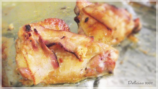 Temperei com antecedência pedaços de coxa e sobrecoxa com alho moído, suco de limão e sal.