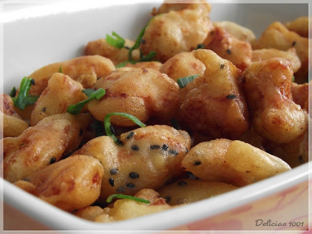 E imagino que usar essa mesma massa, tempurá, com peixes e legumes deva ficar muito bom também.
