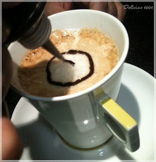 | Desenhando com o creme de chocolate e café… |