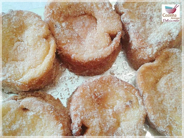 Coloque em papel absorvente … depois de sair o excesso de óleo … passar no açúcar com canela….