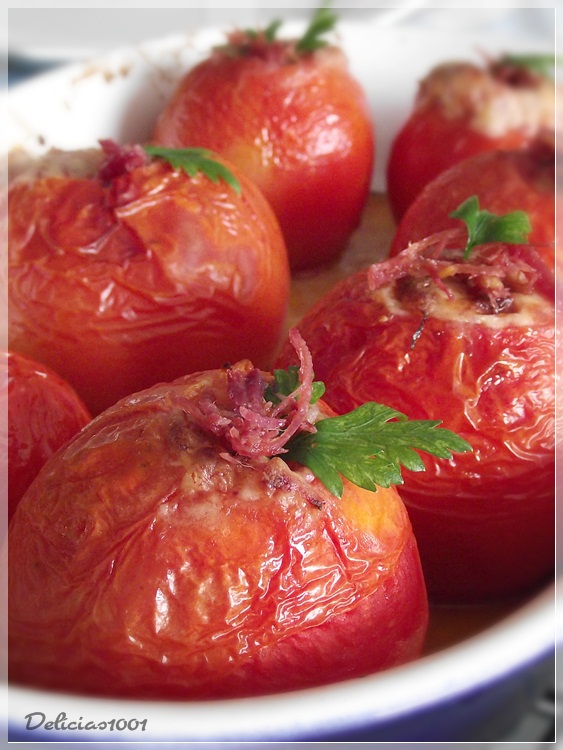 Muito boa a ideia dos tomates recheados, fica bastante convidativo a comer e o sabor é ao mesmo tempo suave pelo creme e marcante pela carne seca.