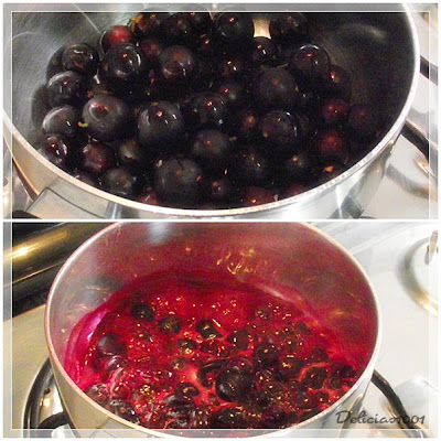 Coloco todas as jabuticabas numa panela com um pouquinho de água. Deixo ferver por uns 10 minutos.