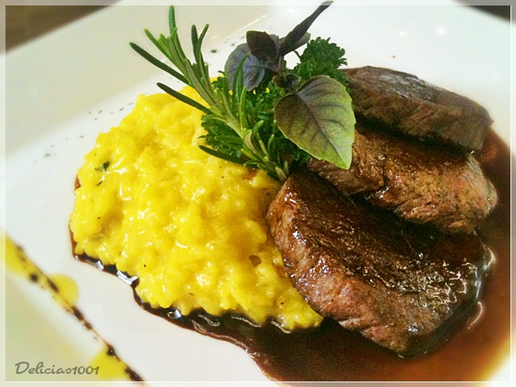 Enquanto isso, prepararam rapidamente os escalopes de filet mignon em fatias finas com 1,5cm de espessura. Temperaram com sal e pimenta do reino e grelharam em manteiga e azeite até o ponto desejado.