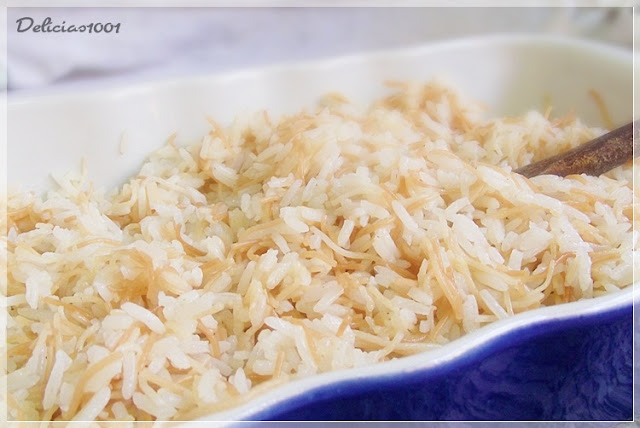 Pensando em pratos árabes, nada melhor que esse arroz com aletria (macarrão cabelo de anjo): rápido, de fácil preparo, leve e acompanha bem as demais delícias: esfiha, charutinho de repolho, tabule, quibe… Hum!