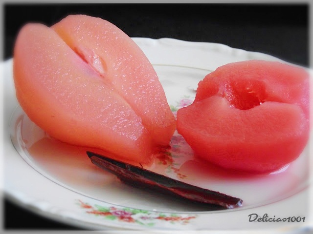 Enquanto isso, descasquei 4 maçãs e 2 peras firmes, parti ao meio e retirei os miolos.